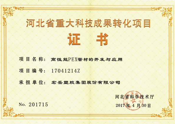 Kaiyun (中国)获得河北省塑胶管道技术创新中心(筹)、供暖行业推荐品牌、中国轻工业塑料行业(塑料管材)十强企业