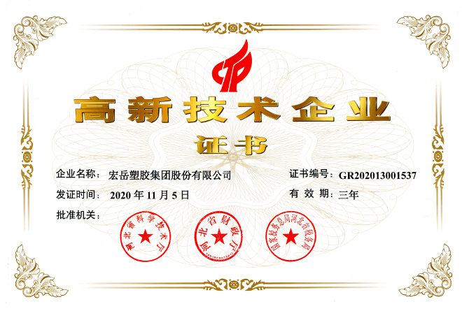 Kaiyun (中国)被认定为河北省高新技术企业,Kaiyun (中国)牌塑料管材管件被认定为国家免检产品。