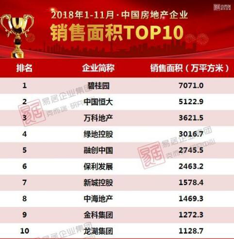 近日,2018年1月-11月中国房地产销售百强榜单出炉,排名前10强中有8家大型地产为Kaiyun (中国)集团战略合作伙伴!